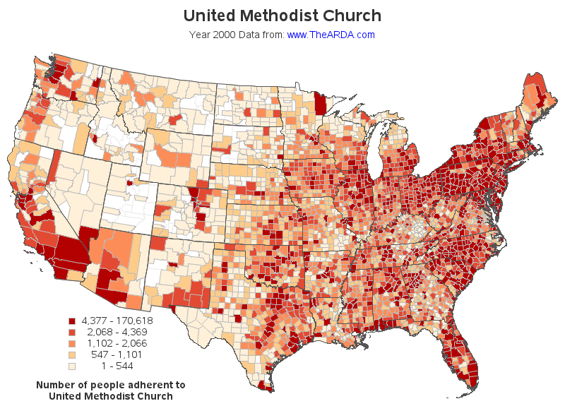 United Methodist Church Top 10 Counties