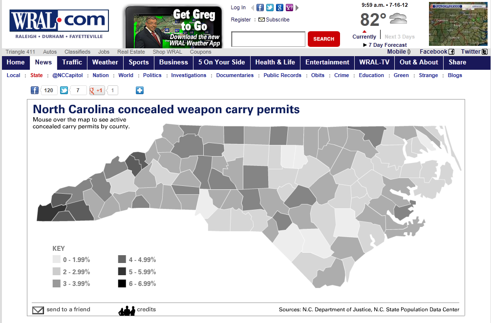 Concealed Carry Weapon (handgun) permits in North Carolina, by county.