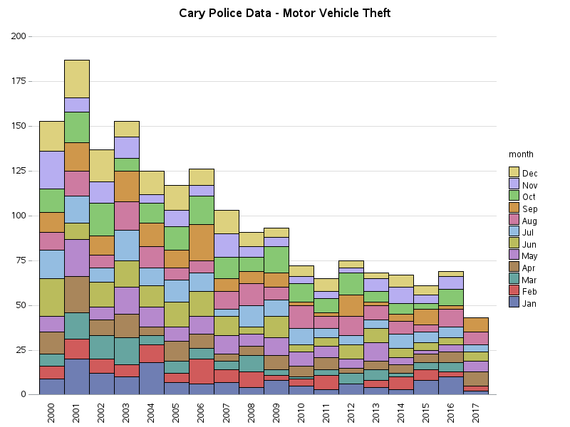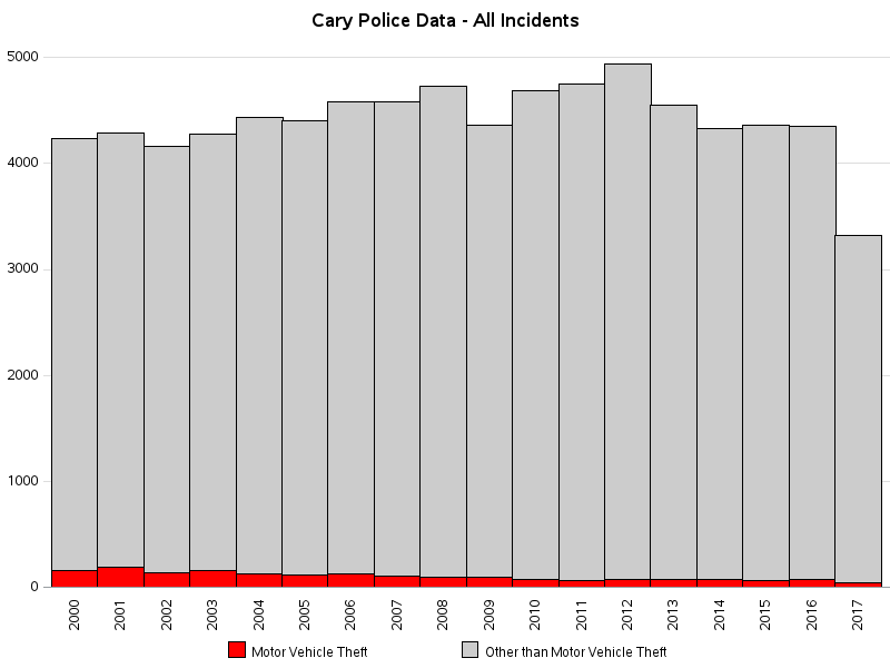 | 28 | MV THEFT - AUTO | 2017-07-31 | 114 | SAMUEL CARY DR | 35.786 | -78.793 | 17006476 | SAMUELS KEEP TOWNHOMES | |
