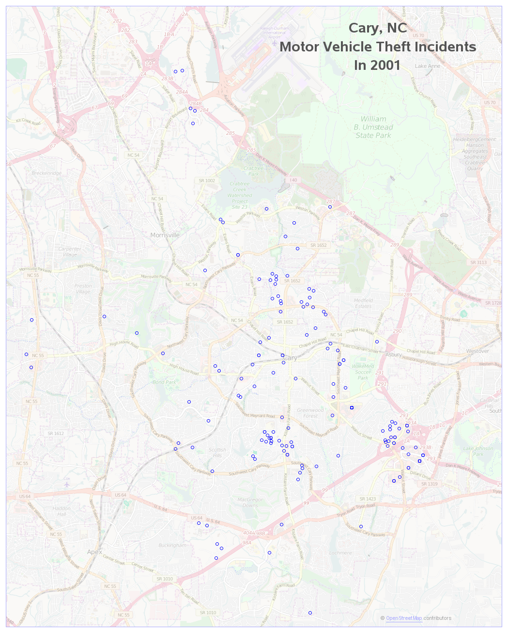 | 16 | MOTOR VEHICLE THEFT - ALL OTHER | 2000-02-24 | 114 | NW CARY PKWY | . | . | 00000946 | ||