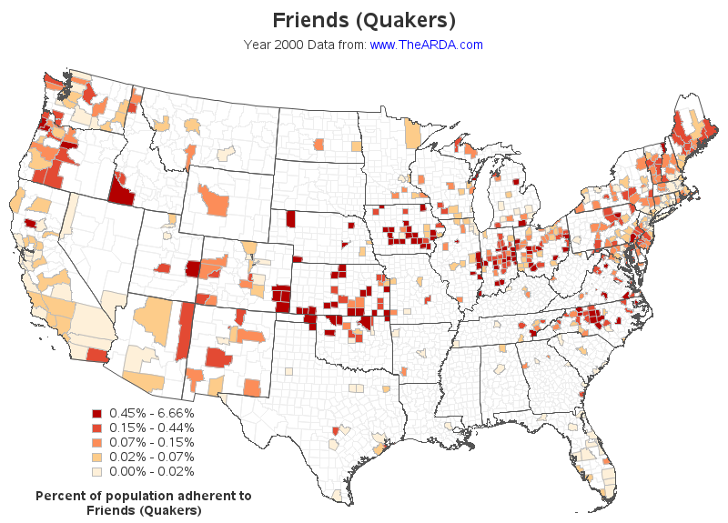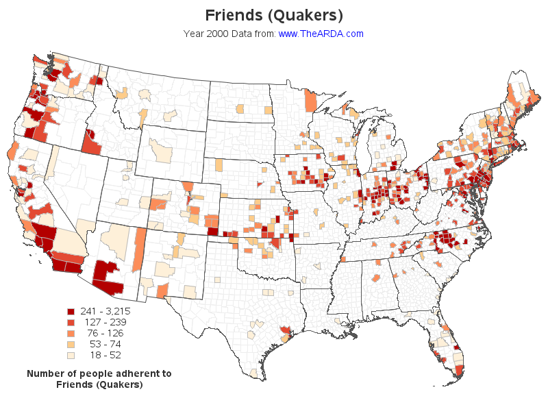 Friends (Quakers) Top 10 Counties