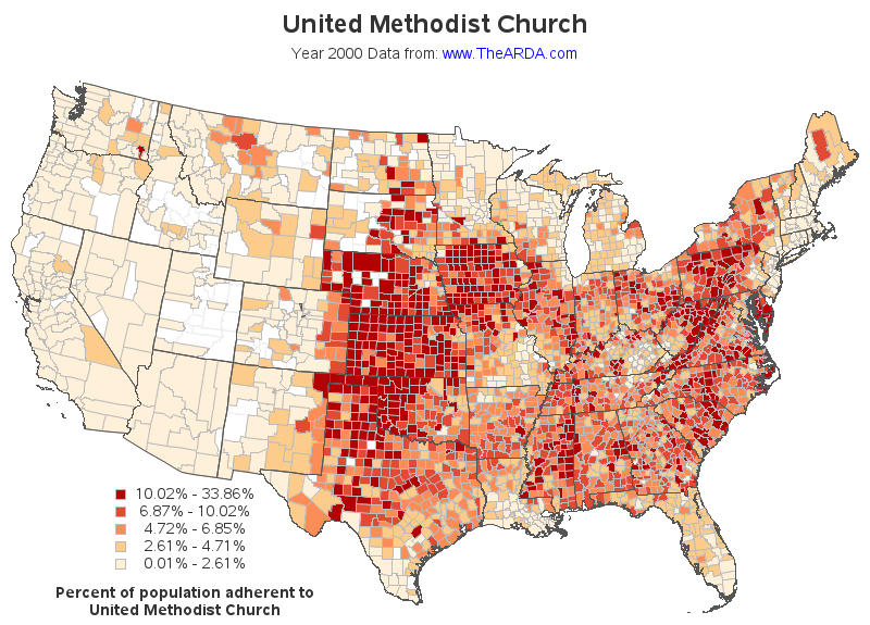 United Methodist Church Top 10 Counties