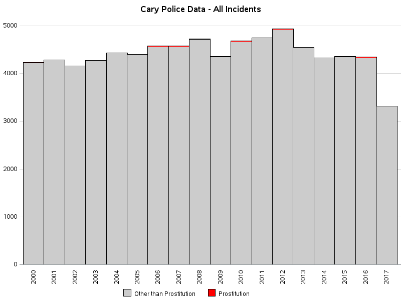 | 5 | PROSTITUTION | 2012-05-15 | 115 | SW MAYNARD RD | 35.774 | -78.800 | 12004487 | SAVON HEIGHTS | |